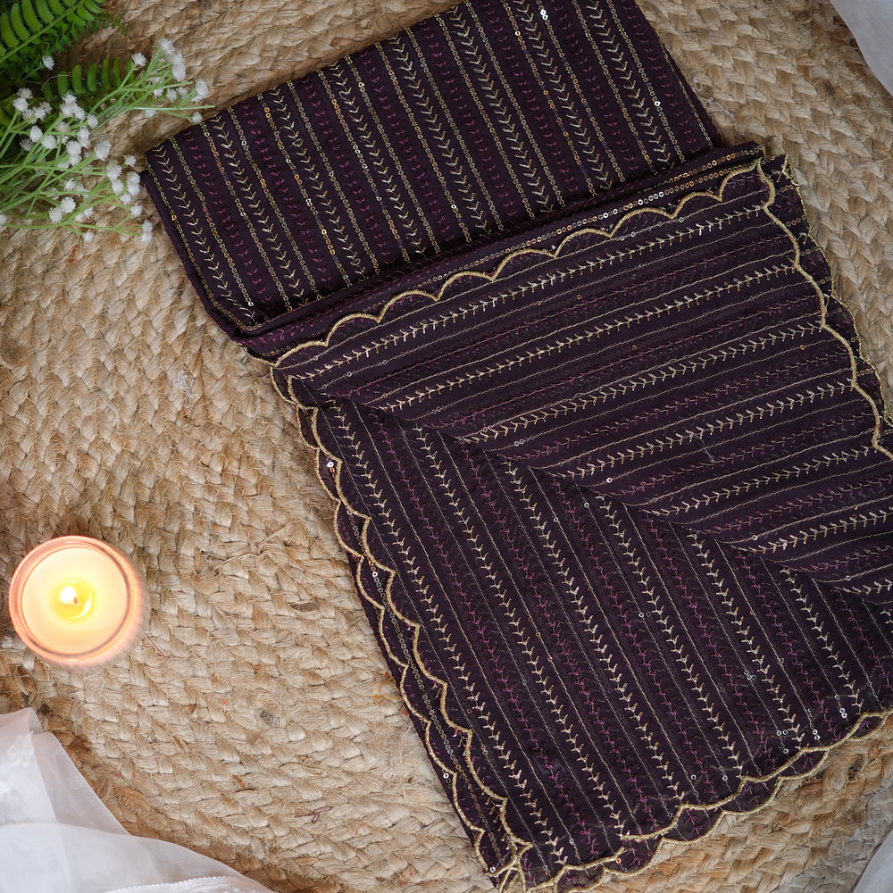 Regular price Rs. 1,180.00Beautiful rich embroidery with sequins golden work embellished all over work Dupatta with scalloped with zari golden. Length 2.5 mtrs width 1 mtr