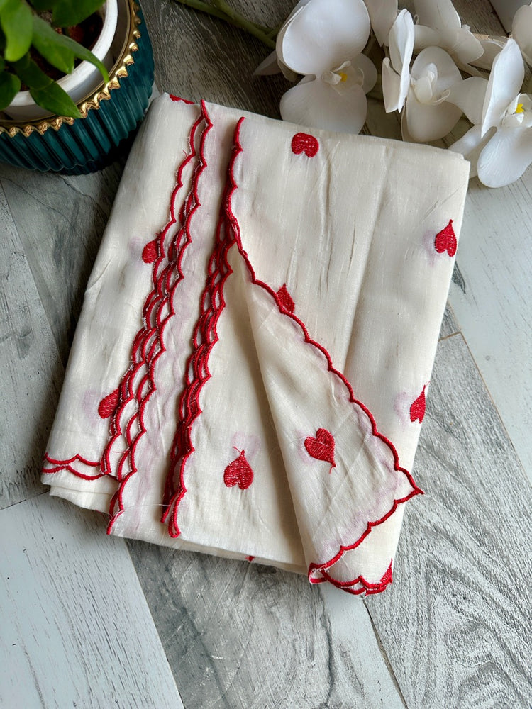 Regular price Rs. 1,150.00Beautiful soft offwhite mul cotton Scalloped Red Heart embroidery Dupatta