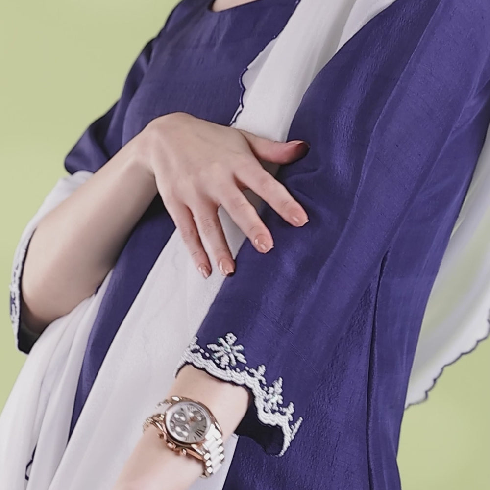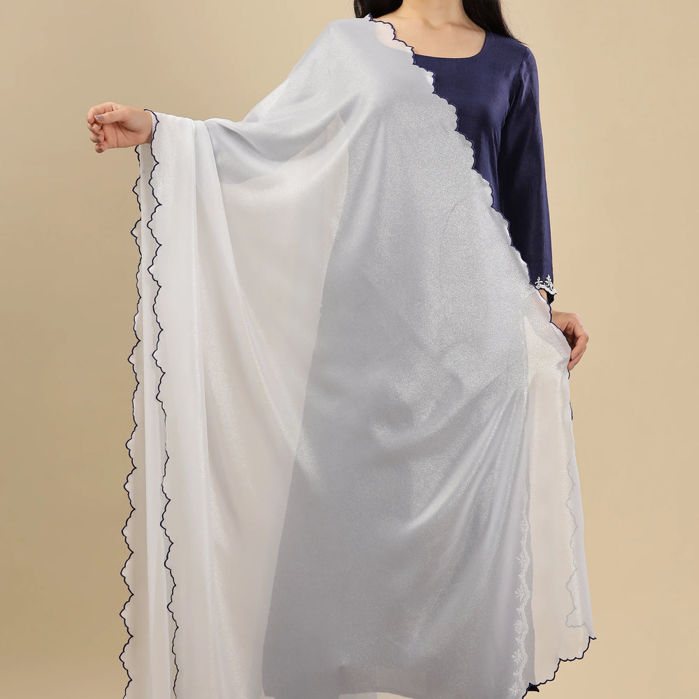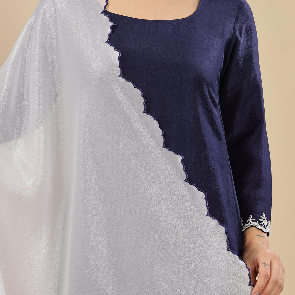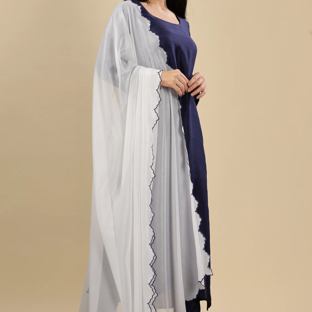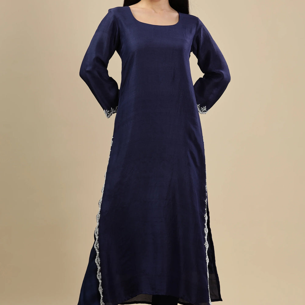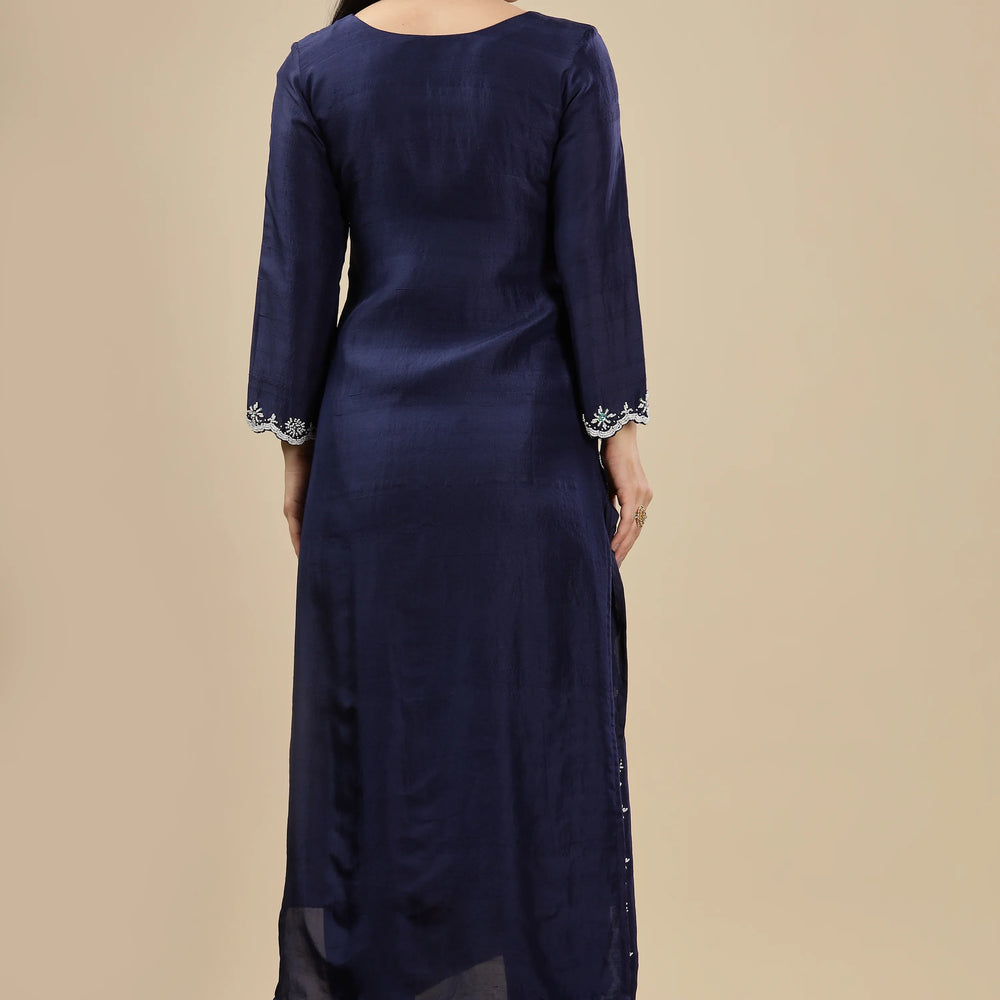 Regular price Rs. 4,699.00Mul chanderi straight slit heavy detailing kurta set with beautiful hand embroidery on both slits and sleeves, Scalloped shimmer georgette Dupatta add luxurious look on top of it. Perfect for Any Party Ocassions.