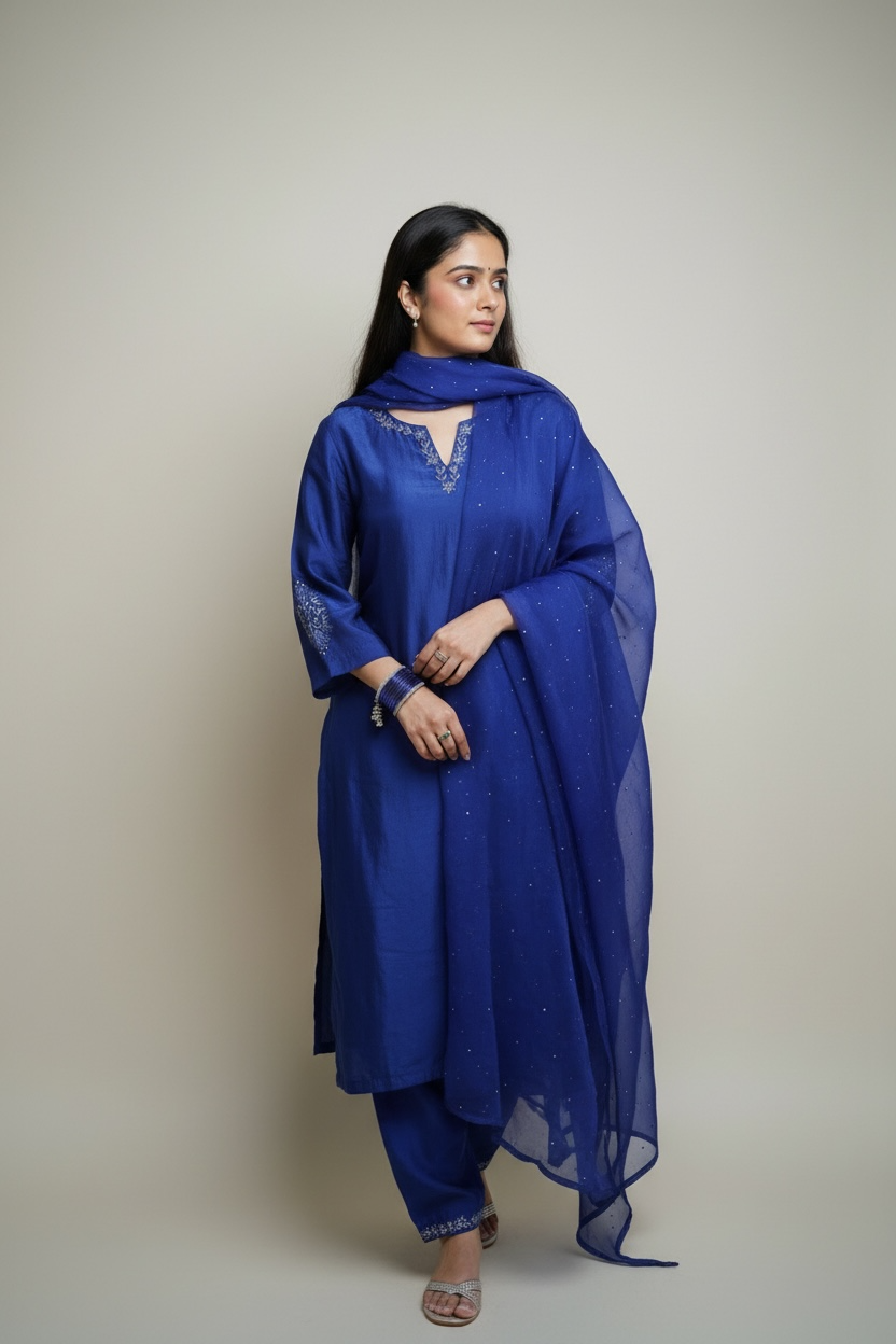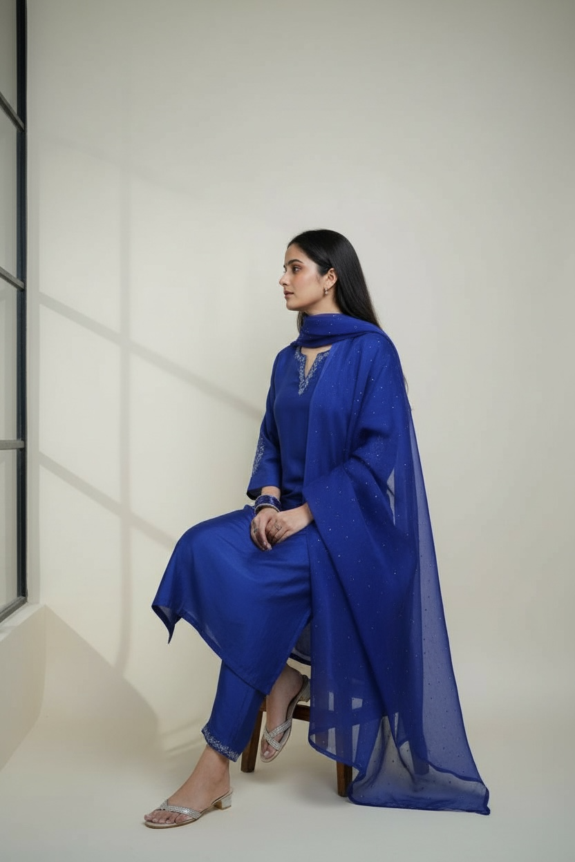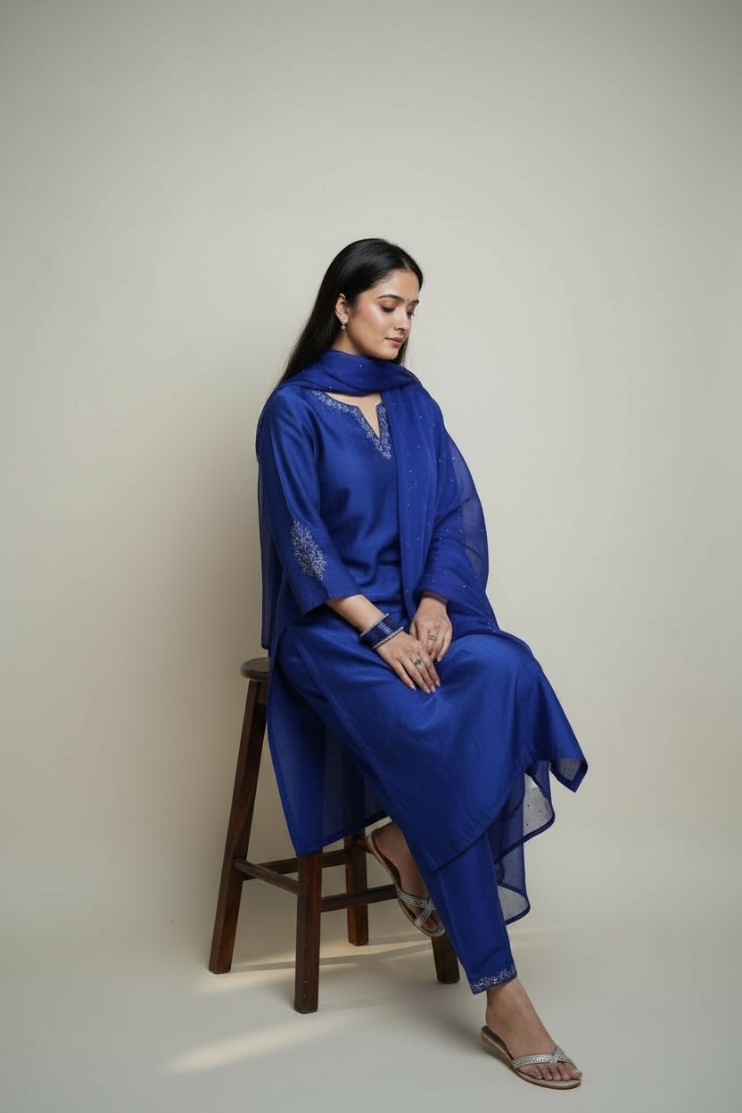 Cobalt Blue Silk Kurta set