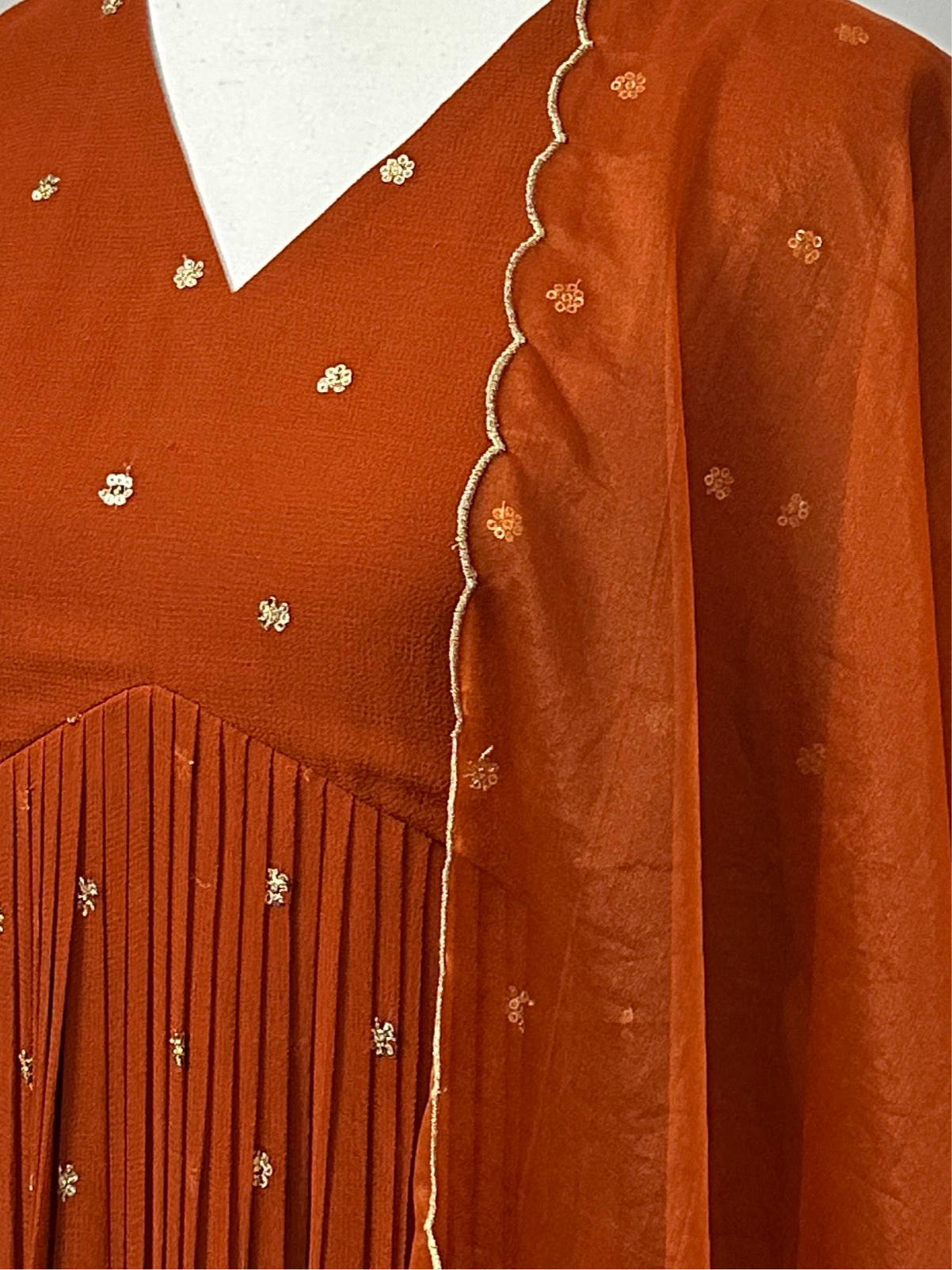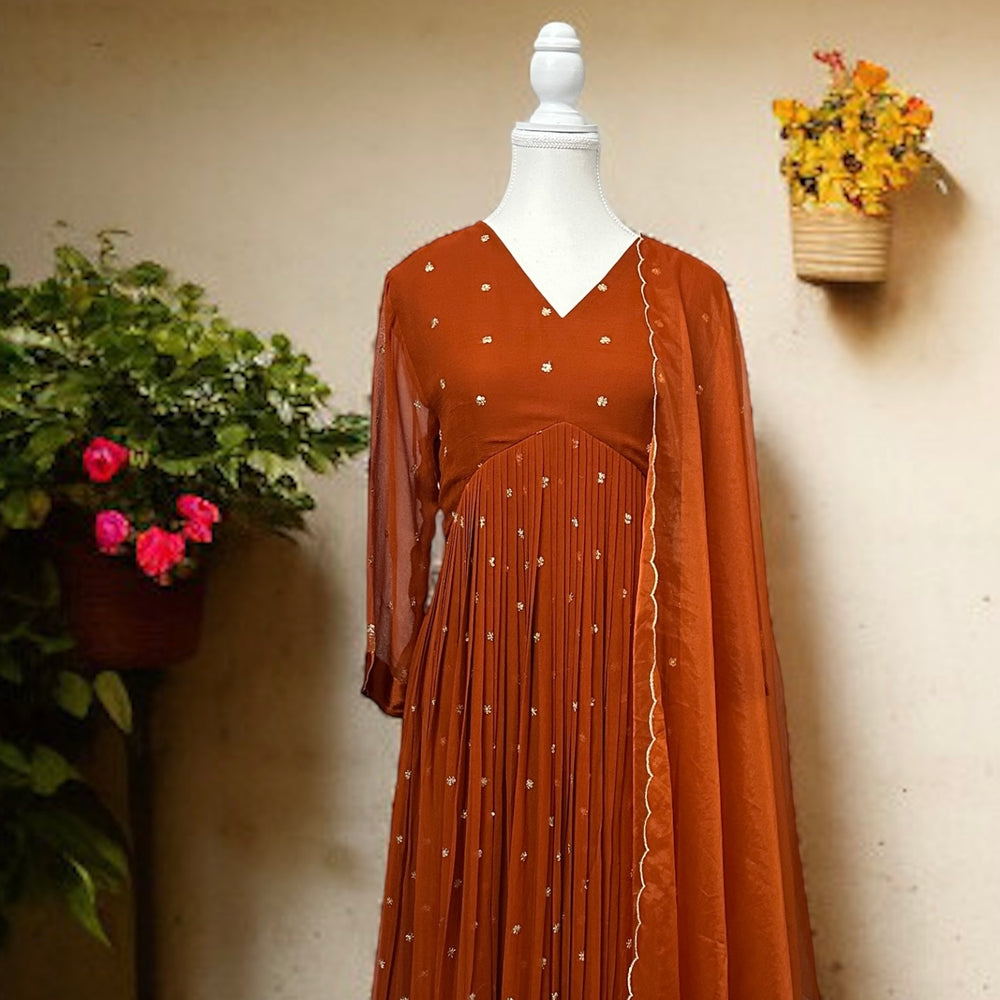 I received the dress on time and it looks exactly like shown in the picture. I was skeptical about which size to go for but the size chart they have mentioned here so so perfect and I'm so happy with my purchase.🥳